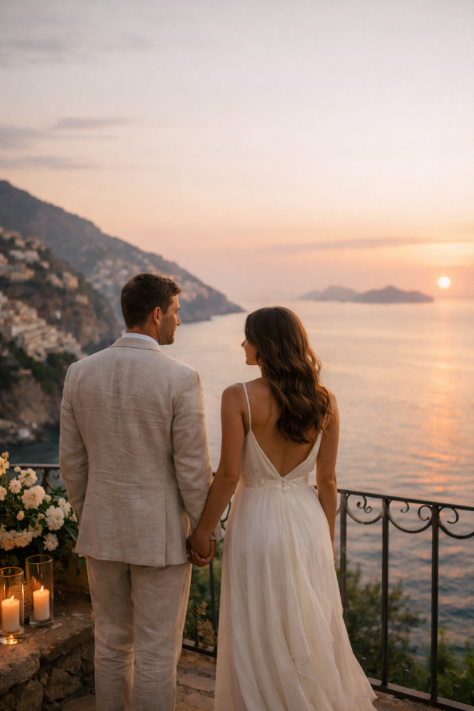 We create luxury bespoke celebration experiences in Positano, along the Amalfi Coast, and across Italy, transforming each special moment into a timeless expression of your unique love story. From intimate elopements and romantic proposals overlooking the sea to refined destination wedding, vow renewals, and meaningful unions, every event is thoughtfully curated to exceed expectations.